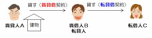 AがBに建物を「賃貸」し、BがCに建物を転貸した。