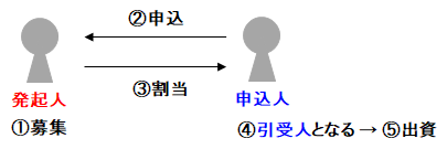 その後、発起人が募集を行い、これに応じて株式を引き受けたい者が申込をし、申込を受けた発起人が、申込人に株式を割り当てます59条60条)。