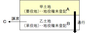 また、「通行地役権の承役地(乙土地)が譲渡された場合において、
