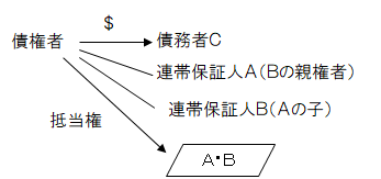 【具体例】 第三者Cには債務があった。この債務について、Aが連帯保証人となった。また、親権者Aが、Bの代理人として、連帯保証契約を締結した。さらに、親権者Aが、Bの代理人となって、AB共有の不動産に債権者のために抵当権を設定した。