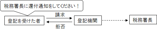 ●「登録免許税を過大に納付した者」は、登記機関に対して、「税務署長に還付通知すべき」旨の通知をするよう請求でき、この請求に対する拒否処分に対して、取消訴訟を提起できる