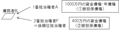 ②その後、FがBに400万円を貸し、同じ土地に抵当権を設定した。・・・Bが2番抵当権者となる