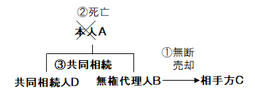 - Aが死亡してBがAの妻Dと共に共同相続した場合、Dの追認がなければ本件売買契約は有効とならず、Bの相続分に相当する部分においても当然に有効となるものではない。