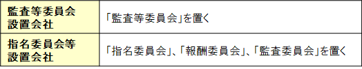 - 監査等委員会設置会社または指名委員会等設置会社は、いずれも取締役会設置会社である。