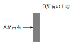 上図のように、B所有の土地の一部(左端部分)をAが占有を継続することにより、Aは左端部分のみ時効取得できます。この場合、その部分のみ分筆(ぶんぴつ)して登記します。