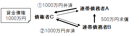 理解 連帯債務者が弁済等をする場合、他の連帯債務者に通知をするようにして、二重に弁済しないようにしています。