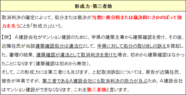 処分又は裁決を取り消す判決は、第三者に対しても効力を有します(行政事件訴訟法32条1項)。
