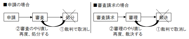 ●「申請に対する処分」「審査請求に対する裁決」について取消判決 → 行政庁は、改めて申請に対して処分・裁決する義務を負う(拘束力)