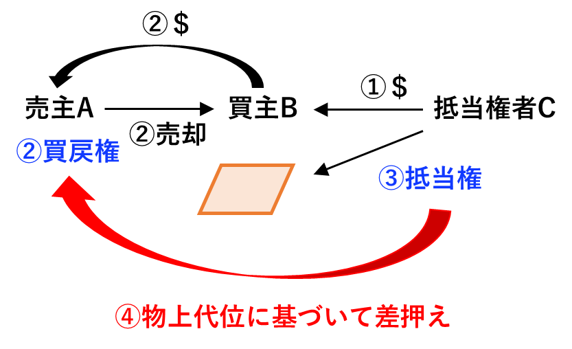 【質問内容】 買戻代金債権につき、抵当権者Cは物上代位権を行使することができる○か×か?です。