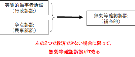 補充的無効確認の訴え すでに処分されていて、現在の法律関係の確認を求める訴えでは目的達成ができない場合に行うもの
