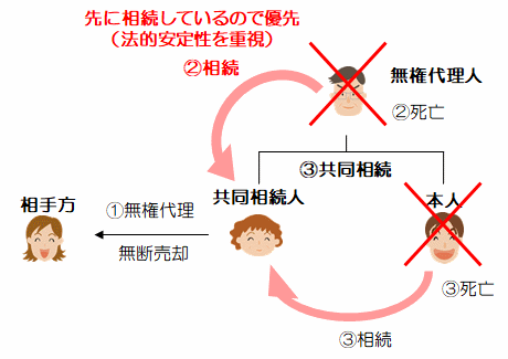 無権代理人が死亡し、その後、無権代理人を相続した本人も死亡した場合
