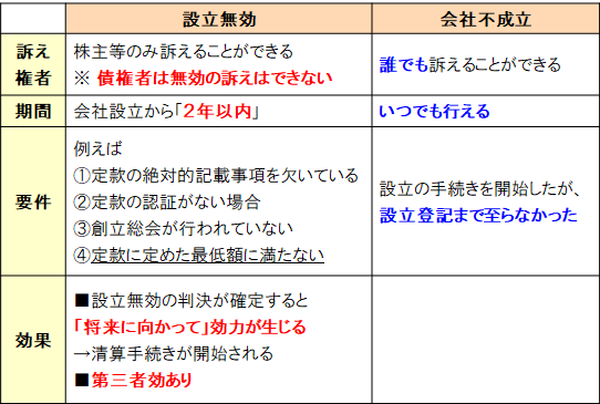 設立無効は、設立登記はされ、いったん会社は成立しているのに対して