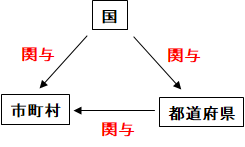 関与は、国が都道府県や市町村に関与したり、都道府県が市町村に関与したりします。